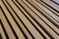Prepripravený veľkorozmerný panel s namontovanými drevenými lamelami predstavuje množstvo usporeného času a umožňuje jednoduchú inštaláciu podľa požiadaviek na dizajn a úroveň dosiahnutej akustiky.