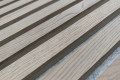 Prepripravený veľkorozmerný panel s namontovanými drevenými lamelami predstavuje množstvo usporeného času a umožňuje jednoduchú inštaláciu podľa požiadaviek na dizajn a úroveň dosiahnutej akustiky.