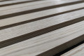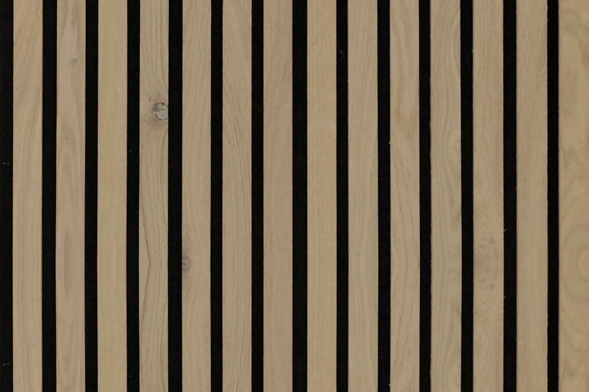 Prepripravený veľkorozmerný panel s namontovanými drevenými lamelami predstavuje množstvo usporeného času a umožňuje jednoduchú inštaláciu podľa požiadaviek na dizajn a úroveň dosiahnutej akustiky.