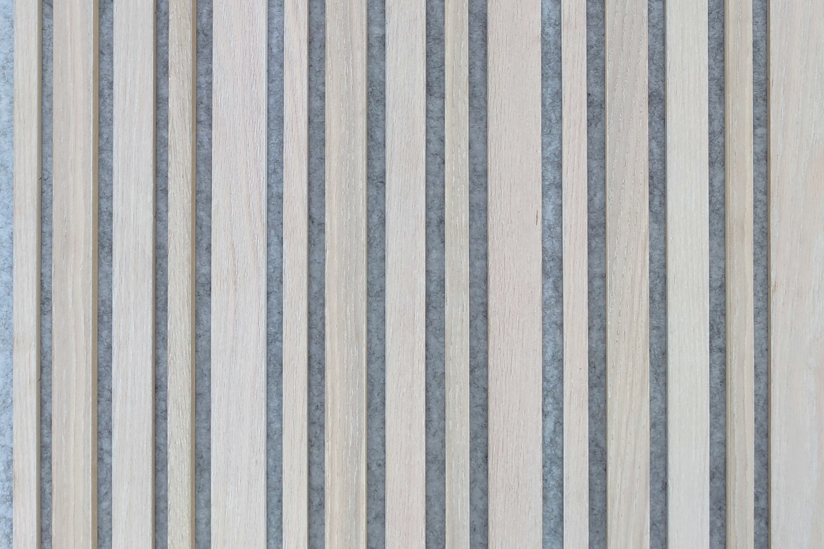 Drevené lamely slúžia ako zvukový difuzér a akustický PET panel ako zvukový absorbér. Ich kombináciou vznikol funkčný lamelový akustický panel, ktorý zútulní a odhluční váš priestor.