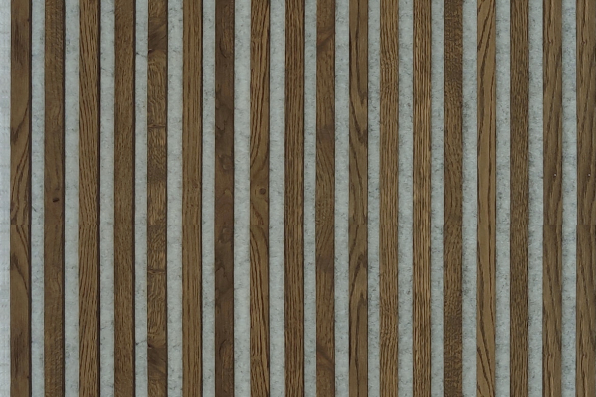 Drevené lamely slúžia ako zvukový difuzér a akustický PET panel ako zvukový absorbér. Ich kombináciou vznikol funkčný lamelový akustický panel, ktorý zútulní a odhluční váš priestor.
